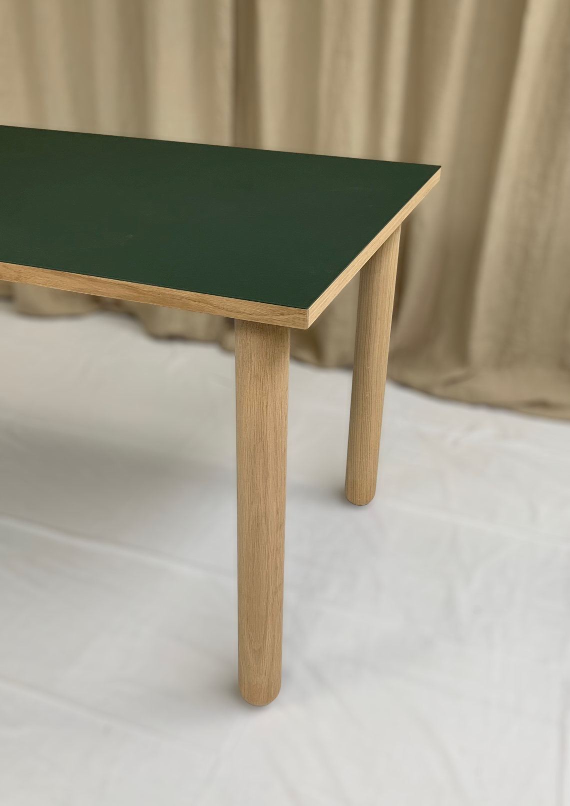 Kanterne på bordpladen kan vi matche til overfladefarven eller lakere den i en helt anden farve. Vi kan også levere med kant i eg, valnød eller birkefinér. Og skulle der være behov for en messingkant eller anden metal kant, kan dette også lade sig gøre.